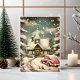 Vintage Pink Car & Snowy Cottage Holiday Card