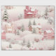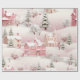 Vintage Pink Christmas Snow Village Wrapping Paper