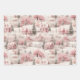 Beautiful watercolour vintage Christmas pattern is shades of pink and green snow scene . Trendy pink Christmas gift wrapping paper.