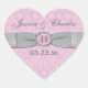 This 1.5" heart shaped vintage pink and grey damask PRINTED ribbon and PRINTED pink and silver look monogrammed button medallion wedding favour sticker and/or envelope seal matches the wedding invitation shown below, and is a perfect way to send out a beautifully coordinated invitation, or you can use it to attach to your wedding favours. If you need any other shapes of sticker, or colour changes, please email niteowlstudio@gmail.com.
