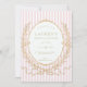 This Vintage Pink Paris Glam bridal shower invitation features an antique laurel leaf frame on a pink and white striped background. An elegant design with simple wording that any sophisticated bride will love.
