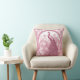 Vintage illustration of pink peacock and decorative background throw pillow.