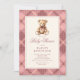 Vintage Pink Plaid Teddy Bear Baby Shower Invitation