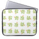 A Laptop Sleeve with a dainty pattern of pink rosebuds on a white background, from a handpainted design by Judy Adamson. This rosebud pattern will fit all sizes of laptop sleeves but may need some re-sizing.