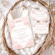 A soft and elegant baby shower design featuring delicate vintage-style blush pink toile illustrations. The frame is adorned with charming lambs, florals, celestial accents, and a romantic bow, creating a timeless storybook nursery aesthetic. Perfect for a classic, feminine celebration with a refined heirloom feel. The gentle pink palette and detailed engraving style give the design a sophisticated yet sweet atmosphere that works beautifully for traditional or cottagecore baby showers.