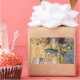 Dive into a unique blend of vintage elegance and surreal fantasy with this striking design. A classically adorned woman, reminiscent of historical portraiture, is depicted holding a large fish, creating an unexpected and intriguing focal point. She wears a feathered crown, a delicate veil, and a richly patterned gown, suggesting a regal or noble presence. Her modern eyeglasses add a whimsical, anachronistic touch. The background is a tapestry of muted gold tones, subtle patterns, and hints of nature, including flying birds and a large butterfly wing. A grid of muted colour swatches on the left side adds a contemporary, artistic flair to this captivating and imaginative piece.