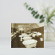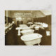 Vintage plumbing showroom display from 1909 with bathtubs, sinks, and a toilet. Great for plumber promo card.