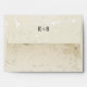 Vintage plumeria or frangipani and ivy custom beige wedding envelope, featuring beautiful white and orange plumerias with green leaves and ivy on beige grunge background on the inside and your initials / monogram on the top flap. This modern yet with a vintage flair monogrammed design is a completely customisable template and is part of a wedding set or collection perfect for a Hawaiian wedding. Beige, taupe, white, green, orange, black.