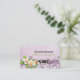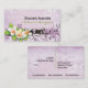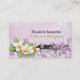 Vintage white plumeria and ivy interior designer custom business card, featuring beautiful white and orange plumerias and ivy on lilac purple grunge background. Lilac purple, white, green, orange. You can change font, size and colour of the text.