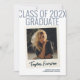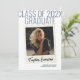 Celebrate your graduate’s milestone with this stylish, vintage-inspired graduation announcement card. The front design features a single photo bordered in a classic Polaroid-style frame, giving the card a nostalgic, retro aesthetic. Behind the photo, bold oversized numbers display the graduation year in a striking design element. Beneath the photo, the graduate’s name is elegantly displayed in a modern handwritten font, adding a personal and heartfelt touch to this timeless layout.