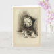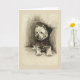 A vintage illustration by Cecil Aldin of an alert and adorable West Highland White Terrier (Westie) who is wearing a doggie coat as if he or she is ready for a walk outdoors on a brisk day. The British artist and illustrator, Cecil Charles Windsor Aldin RBA (1870-1935), was best known for his paintings and sketches of animals, sports and rural life. This card is blank inside for your own message.