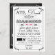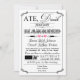 This vintage poster style "Ate, Drank and Got Married" post-wedding reception typography black and white chalkboard LOOK wedding invitation has a variety of fonts and scrolls on it, along with a pair of pink hearts and pointing hands. It has a funny new take on the "Eat, Drink and Be Married" trend that is perfect for the young hipster couple, the gay couple with two brides, or the couple wanting a truly original wedding invitation that will be remembered by all their guests. It is shown here on basic paper. It is easily customised with your own information. There is some customisable text that you can edit the way you require. ALSO, please note that everything will print as it appears on your monitor. Zazzle will not edit anything for typos or mis-alignment etc., and I will not see it once you have ordered it. If you need help with your wording, please email me BEFORE you order. If there are any other items you need to make your event extra special, please email your request to niteowlstudio@gmail.com.