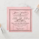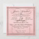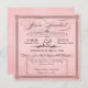 This beautiful, light pink square wedding reception invitation, with chocolate brown text has a vintage, old fashioned feel with old-timey letter design, including elaborate script elements, a decorative banner, stars and a swirly ampersand. The fancy invitation is inspired by both vintage design and stylish posters. The text reads: "You're Invited to the wedding reception of [customisable name] & [customisable name] [customisable date] [customisable time]. Please Join Us for an Unforgettable Celebration". Further personalise the invitation with the reception information and address, in the box with dotted border.