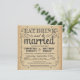 Eat, Drink, and be Married -- Elegant rustic style country wedding invitations -- Swirly, curly scrolls and old-fashion vintage typography charcoal grey chalk-style lettering on antique brown kraft parchment background. Add the bride and groom names and wedding info in this easy to use template. Fancy, fun and whimsical, retro hand-written style calligraphy can be modified for your formal or semi-formal wedding theme. Casual but classy modern style is perfect for trendy contemporary weddings with a touch of romantic sophisticated charm for traditional couples. Perfect for spring, summer or fall weddings. Please contact us for help with customisation if you need additional room for your wedding details. NOTE: Shown on SQUARE 5.25 x 5.25 size invitation cards. Other sizes and styles available, along with matching postage stamps, coordinating bridal stationery, wedding packet collections and shower favours.
