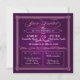 This rich aubergine purple, soft pink and white square wedding invitation has a vintage, old fashioned feel with old-timey letter design, including elaborate script elements, a decorative banner, stars and a swirly ampersand. The fancy invitation is inspired by both vintage design and stylish posters. The text reads: "You're Invited to the wedding of [customisable name] & [customisable name] [customisable date] [customisable time]. Please Join Us for an Unforgettable Celebration". Further personalise the invitation with the wedding ceremony and reception information and address, each in their own box with dotted border.