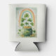 A can cooler with a seasonal St. Patrick's Day image. Faded grunge style paper. A green pot of gold with coins