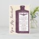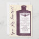 This invitation features an old black and white illustration of a medicine, potion, or poison bottle with a bat on an old paper style texture. The text can be altered to say what you want.