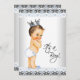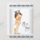 Adorable blue prince baby boy shower invitation with sweet little prince on a beautiful grey, black and blue background. This cute prince baby shower invitation is easily customised for your event by simply adding your event details, font style, font size & colour, and wording.