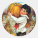 A public domain vintage art picture of a fall scene with a boy holding a pumpkin from a children's bible storybook.