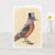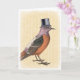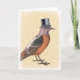 Add custom text inside! Vintage bird in shades of purple and orange with a black top hat on a broken herringbone pattern.