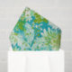 A vintage 70's inspired fabric texture look of a floral design in an olive green, sky blue and white colour pattern with overlapping translucent flowers and leaves that will put a little whimsy on your product.