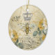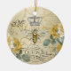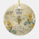 This vintage themed ornament for any time of the year features a queen bee design with honey bee and royal crown on a background of golden yellow roses. Personalise with a monogram in black script typography. Designed by world renowned artist ©Tim Coffey.