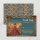 This vintage-style RSVP card complements your Quinceañera celebration with elegant Mexican-inspired details. Featuring a red ball gown, papel picado banners, marigold accents, and a Talavera tile border, this response card matches your invitation suite. Personalise with your own event info and reply options. Personalise the image for your photo option.