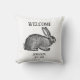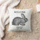 This simplistic throw pillow is decorated with an elegant vintage rabbit graphic design. The name and date can be easily personalised with the editing tool to make it your own!