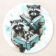 Vintage Racoon Readers Club Round Paper Coaster