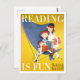 This postcard is a reproduction of a vintage library literacy poster reading, "Reading is fun," and advertising Book Week.