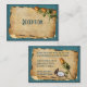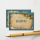 This bygone era inspired vintage reception enclosure card has PRINTED dried yellow roses, a small green satin bow, and an old pocket watch sitting on a stack of old love letters with faded calligraphy writing and torn and burnt edges on them, sitting on top of a teal bllue crackled paint LOOK distressed background that matches the wedding invitations shown below. ****If you re-size the card, or if you change fonts, or the size of the font, some of the design and/or text may get cut-off. Everything will print as you see it on your monitor. I will not see your invitation, and Zazzle will NOT correct anything (typos, mis-alignment etc.). The text and paper is all customisable. If you need help with this card, please email me BEFORE you place your order. If you require any other matching items, please email your request to niteowlstudio@gmail.com.
