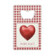 This sweet personalised bottle opener features a vintage inspired red heart on cream and a matching red and cream gingham background. Personalise the front with your choice of name and the back with your choice of special text. Great for personalised Valentine's Day party gift bags and party favours.