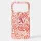 Monogram Pale Burnished Pink and Vintage Red Damask iPhone Cases