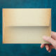 This beautiful and trendy distressed envelope has a vintage flowers theme. On the inside of the envelope, there is a soft red, brown, tan, muted yellow, and green floral swirl design with a distressed tan background. On the outside, there is a distressed tan design. This design has a tattoo type design that would suit a traditional wedding or a gothic styled wedding. This is part of a matching wedding invitation set that is available through my shop.