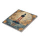 In the style of Van Gogh, a beautiful drawing of a lighthouse is showcased in this image, set against a vibrant sky background. The lighthouse features a red and white tower with a blue door, surrounded by a stunning yellow floral border. The colour palette consists of warm tones such as beige, brown, and dark blue, with accents of a deep navy blue. This picturesque composition captures the essence of a tranquil seaside setting.
