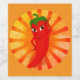A cute cartoon pepper posing for a picture. Superstar style. Custom wine labels for spicy drinks.