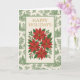 Vintage Red Poinsettia Holiday Card with Green Toi