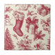 Vintage Red Toile Christmas Pattern with Stockings Tile