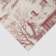 A seamless vintage Christmas toile pattern tissue paper rendered in deep red linework on a cream background, capturing the charm of a winter village scene. The design features Santa Claus carrying gifts, snow-covered cottages, evergreen trees, reindeer, and peaceful snowy paths — all drawn in the elegant, detailed style of classic toile de Jouy. This nostalgic and festive pattern evokes the warmth and tradition of an old-fashioned Christmas.