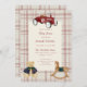 Celebrate the upcoming arrival of your little one with this charming vintage-inspired baby shower invitation. Featuring a classic red toy car graphic and a cozy plaid background, this design evokes a sense of nostalgia and warmth. The adorable teddy bear and rocking horse add a touch of playful innocence, perfect for welcoming a baby boy or girl. This invitation includes a convenient QR code RSVP on the back, making it easy for your guests to respond. The distressed texture and rustic charm make it a unique choice for a memorable baby shower celebration.