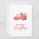Send warm holiday wishes with this festive Christmas card featuring a hand-painted red vintage truck carrying a Christmas tree and gifts. The front reads "Merry Christmas" in playful red script, while the back includes a cheerful message from your family. Perfect for spreading holiday joy with a rustic and cosy charm. Easily personalise with your family name and greeting.