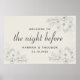 Welcome your guests with charm using this vintage-style rehearsal dinner sign. Featuring romantic hand-drawn florals in soft silver-grey on an ivory background, this elegant sign sets the tone for an intimate evening before the big day. Personalise with names and date.