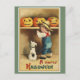 This early 1900's vintage Halloween illustration features a little boy in overalls picking out jack-o-lanterns with his dog. The words "A Happy Halloween" are captioned below.
