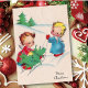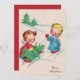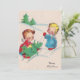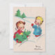 Vintage Retro Angels Pulling Christmas Tree Holiday Card