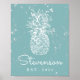 Adorn the walls of your beach house or coastal abode with this vintage style frameable print featuring your family name and year established in retro typography, topped by a pineapple illustration. A distressed effect on a coastal dusty teal aqua background gives this piece rustic appeal.
