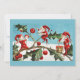 Vintage Retro Christmas Card Holly & Pixies