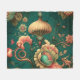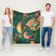 Vintage retro design floral green fleece blanket