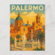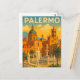 Check out this colourful Palermo Sicily Italia postcard featuring a vintage retro travel artwork of the sicilian capital with its landmarks and monuments. Great travel souvenir and gift idea for every tourist and visitor of the european travel destination. Purchase now.