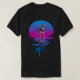 I give wanted to give this a 4 instead of a 5 because these Basic DARK T0shirts run unexpectedly SLIM or Narrow. Which is great if you do not have a potbelly, but I have a paunch. It isn't the shirt's fault that I've got a beer belly. The design and shirt itself is a quality cotton shirt. The color is more of a deep purple, but still a very pretty color. The Basic DARK T-shirts run a bit SLIMMER than the Basic Ts. The neck is a fraction narrower (or seems to be narrower) also. I'm a paunchy middle-aged woman and my neck is 12 inches (31cm) thick and the neckline fell about the same as in the photo of the man, and I had the desire to tug it a bit. So if you're a thick necked man or like loose shirts, be aware these are slimmer shirts. Once I get rid of my lockdown paunch it'll look great. The shirt washed well in cold water with no apparent bleeding. We don't have a dryer, so it hung dry. Did not shrink. Love the colors and the design. The design looks smaller on my shirt than it does on the model on-line. But still, it looks good on the shirt. The printing looks as it does on the model, just the size seems fractionally smaller. Washed garment in cold water, hung dry and design appeared unaffected.