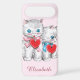 Easy to customise Valentine's Day phone case, just add your name! Vintage illustration Victorian Happy Valentine's Day holiday design featuring two adorable grey and white brother and sister kittens with beautiful blue eyes and wearing red hearts. The girl has a pink bow and the boy has a blue bow. 50s retro kitsch.